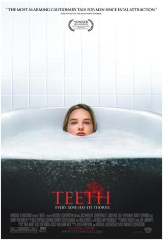 teeth isn’t a movie I’d recommend to everyone, of course. if blood and gore bother you, this isn’t for you, although really the gory parts are quick, not dwelt upon gratuitously, and are important to the plot development. also I wouldn’t see it with anybody with whom you wouldn’t feel comfortable in a frank discussion about sexuality (like, your grandma?). and lastly if you’re the kind of person who gets hung up on weird premises and is unable to suspend disbelief to focus on what’s really important in a story, you’re gonna get stuck on this one. BUT it is a very well-made movie, and I believe it works both as a narrative and as a commentary. the acting is great, especially but not exclusively from jess weixler, and it was shot well. sure, the constant vag/teeth imagery gets a little repetitive (I couldn’t believe that audience laughed aloud EVERY time a cave or whatever showed up, but to each his own I guess), but I disagree with Stephen Holden (he’s no A.O. Scott or Manohla Dargis – take THAT, Stephen Holden!) when he said the film falls short because “the problem with shockers, comic or otherwise, is that once the coup de grâce is delivered, there are no big surprises left.” I think the strength of this film is that it doesn’t rely on simply being a shocker, but is much more into examining the human condition than providing entertainment, as all good movies should be.